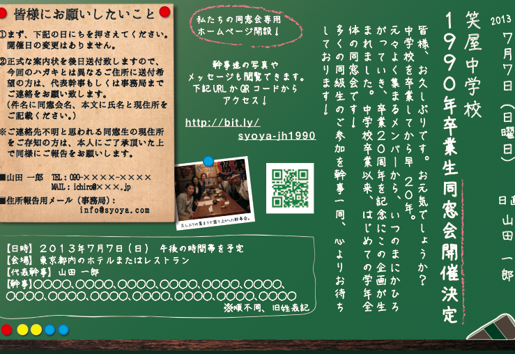 - テーマ設定: 同窓会のテーマや目的について意見交換。