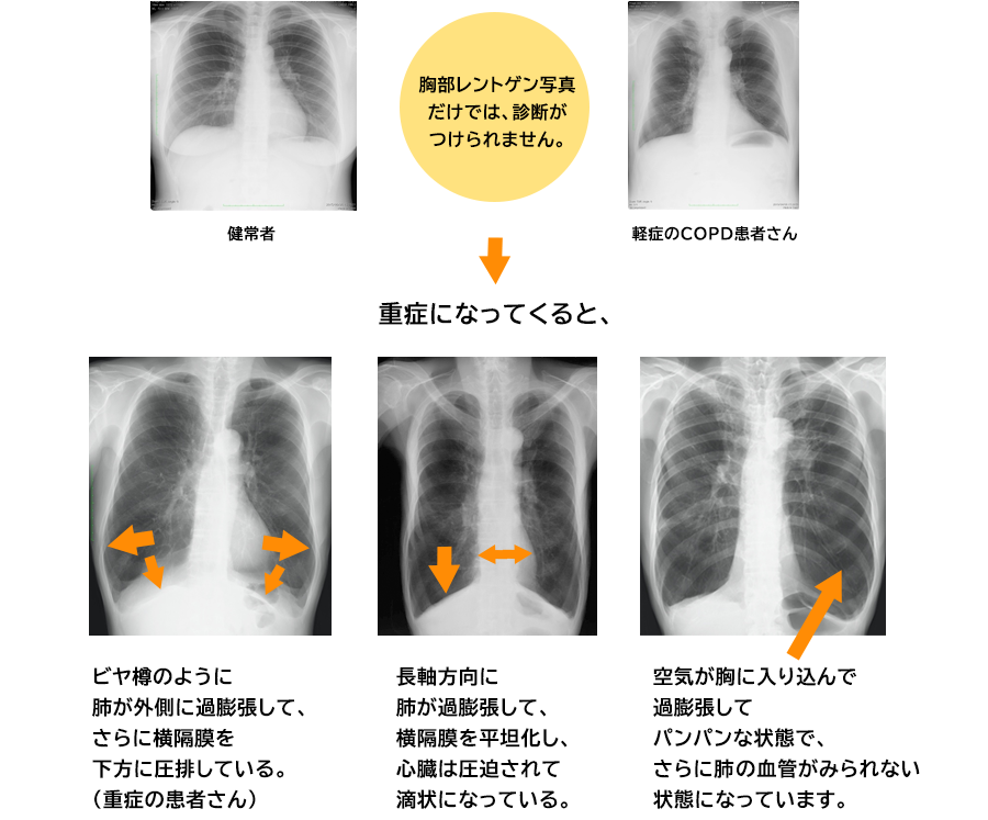 | X線 | 肺の構造や影響された部分を見るため。 |