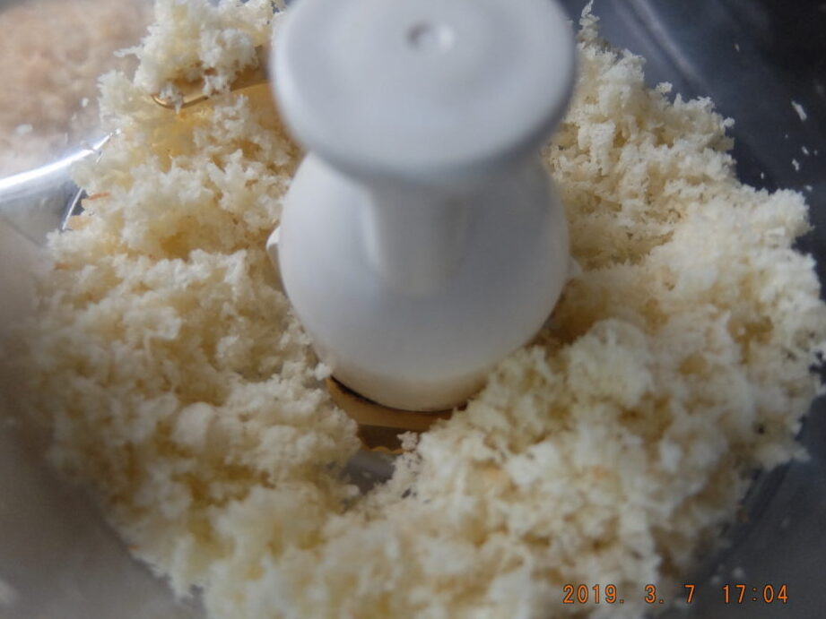 乾燥したパンが冷めたら、フードプロセッサーやミキサーを使って粉砕します。この時、大きさはお好みに応じて調整しましょう。細かいパン粉がお好きな方もいれば、粗めの食感を楽しむ方もいますので、自分の用途に合わせて選びましょう。